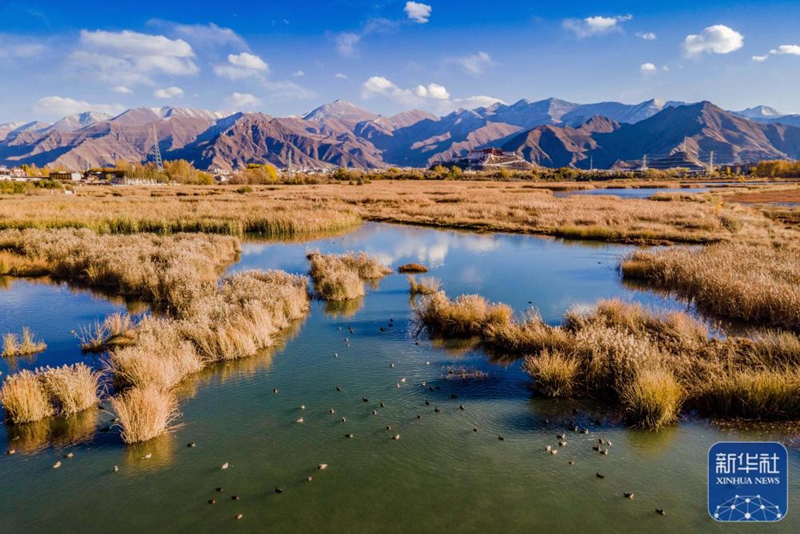 这是11月5日拍摄的拉鲁湿地景色(无人机照片)。新华社记者 周荻潇 摄