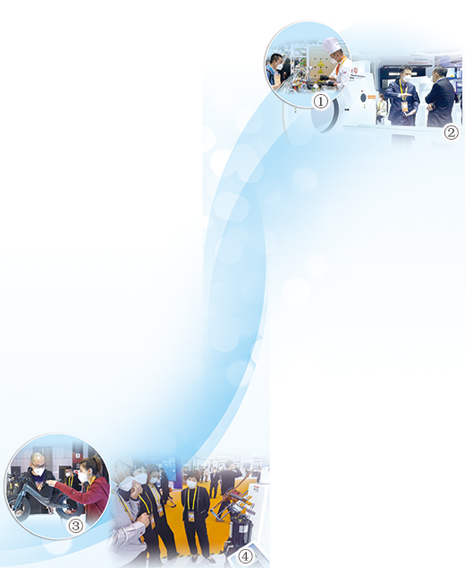 图①:在进博会食品及农产品展区,工作人员在现场烹饪营养美食。