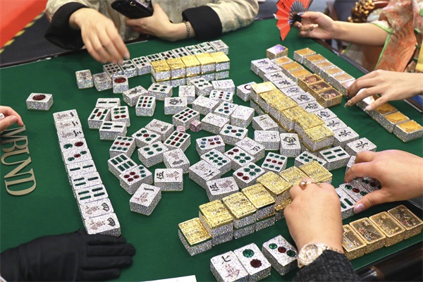 在消费品展区,高级珠宝定制品牌摩邦世家“钻石麻将”在第五届进博会“首秀”,引来观众围观。