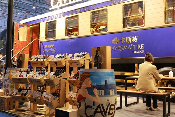 走进食品展区二层,记者看到法国卡斯特展馆布置了一辆从“波尔多-上海”的“卡斯特快车”,列车上陈列了许多几百年的古董家具,带现场观众“穿越时空”。
