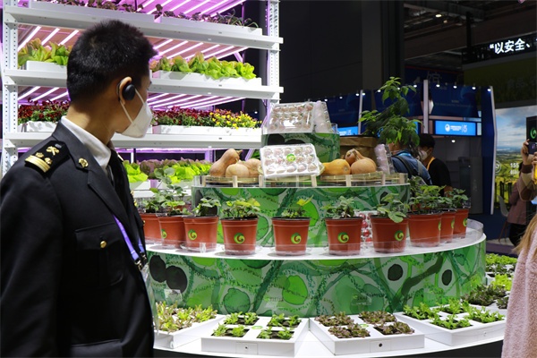 第五届进博会展示内容更加丰富,新设农作物种业专区。11月8日,观众在光明母港展区参观高产果蔬种苗。