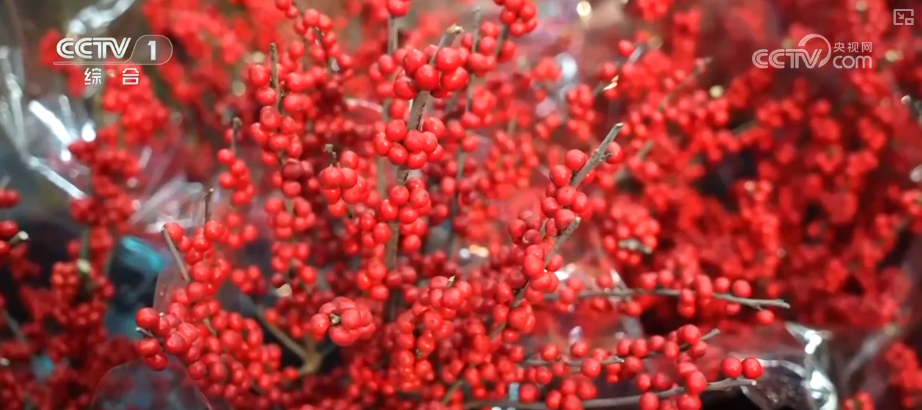 而在云南昆明斗南花市,颜色火红的北美冬青也是春节的畅销品。过去依靠国外进口,如今随着国产北美冬青大量上市,价格更加亲民,销量也快速攀升。