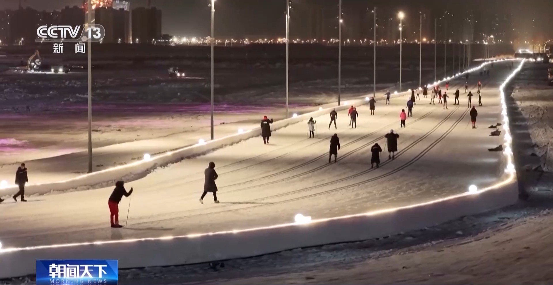 总台记者 孙晶:我所在的地方是长春市伊通河畔的肆季南河岸线公园,这条全长5.7公里的雪道,是全国首创的城市灯光越野滑雪场地,温度是零下22摄氏度,但现场十分热闹。