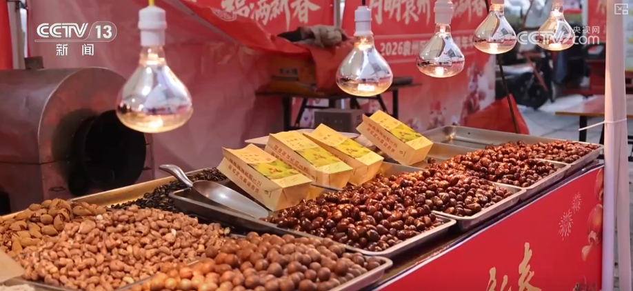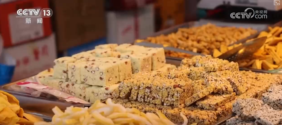央视网消息:这几天,北京市朝阳区的柒号市集格外热闹,全国各地的特色年货一应俱全。