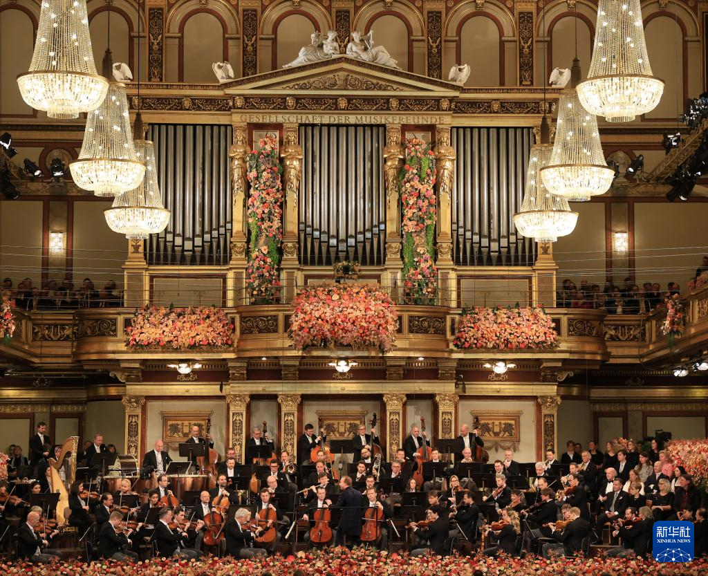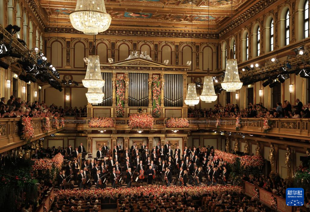 2026年1月1日,维也纳爱乐乐团成员在奥地利首都维也纳金色大厅举行的新年音乐会上演奏。当日,维也纳爱乐乐团在奥地利维也纳金色大厅举行2026年新年音乐会。