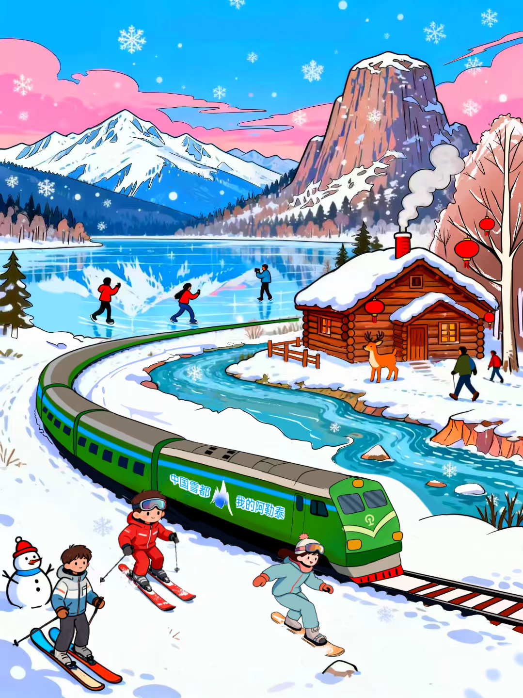 冬日限定,燃情“雪都”。“中国雪都·我的阿勒泰”号旅客列车的开行,将持续激发冰雪消费活力,推进新疆特色优势现代化产业体系建设,进一步便捷旅客出行、促进各民族交流交往交融。未来,随着路网结构的不断完善、客运产品创新的持续深化,铁路必将在赋能文旅产业、助力区域发展的道路上,书写更加精彩的篇章。(作者:刘叶枫 冉毅 漫画:杨泽胜)