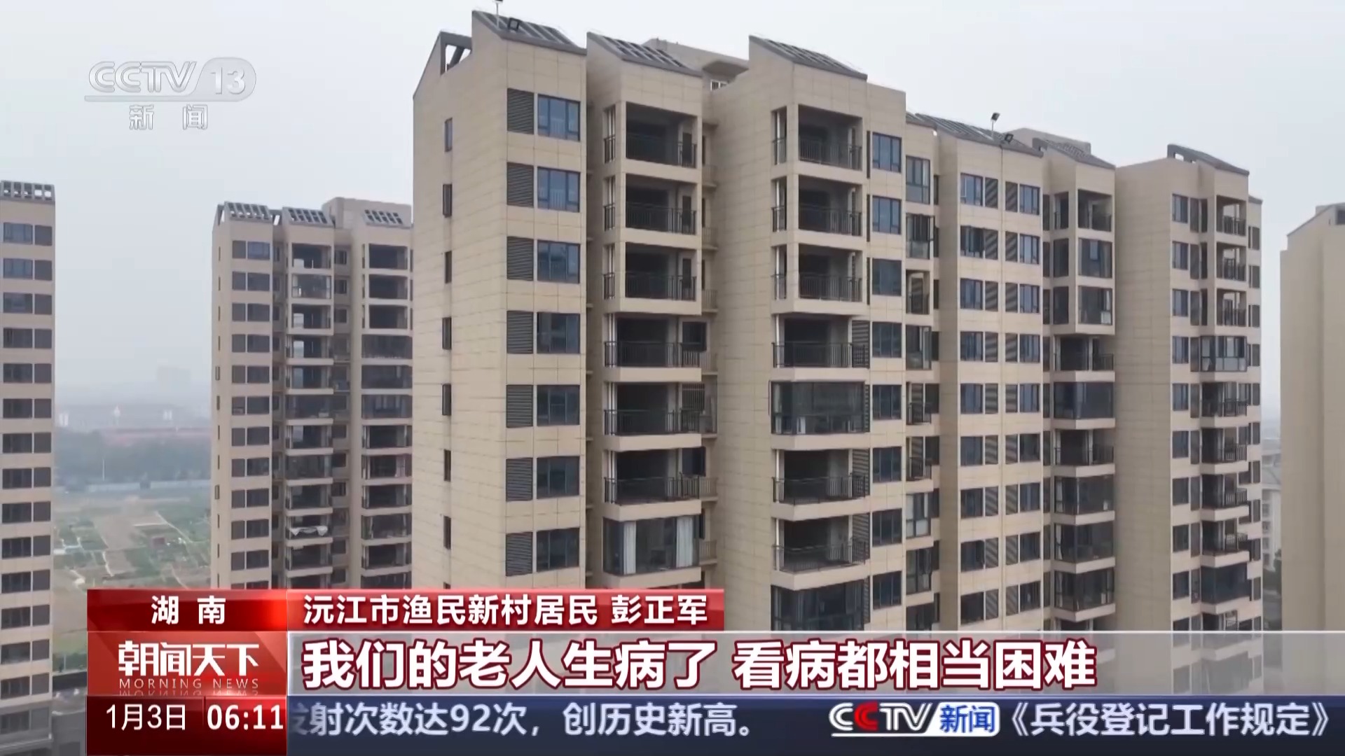 湖南省沅江市渔民新村居民 彭正军:以前住岛上,我们没有学校、没有医院,我们的老人生病了,看病都相当困难。现在搬到这里后,环境又好,配套设施也齐全,现在我们的生活是既安心,又舒心。