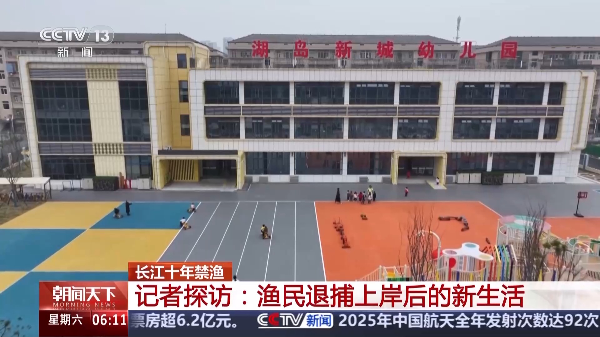 不仅就业稳得住,退捕渔民也有了新家园。现在,占地300亩的“渔民新村”已全部投入使用,一公里范围内从幼儿园到高中都有布局,小区内绿化、健身等设施应有尽有。