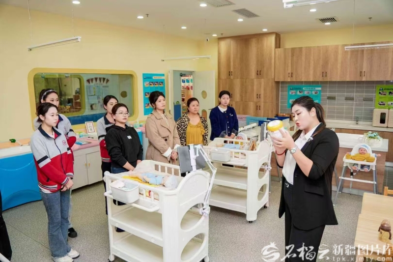 近日,在伊宁市聚盛职业技能培训学校组织的育婴员培训中,学员借助仿真娃娃进行实操训练。伊宁市聚盛职业技能培训学校供图