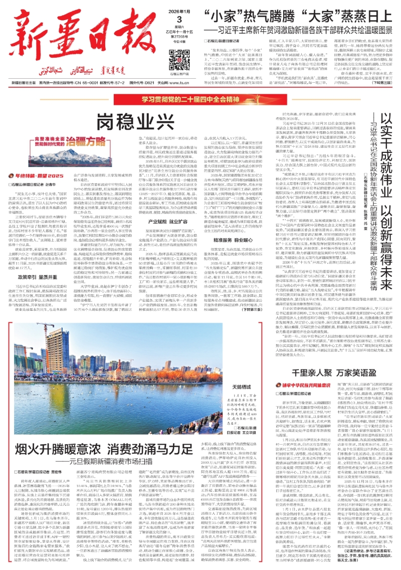 新疆日报1月3日【A01版●要闻】