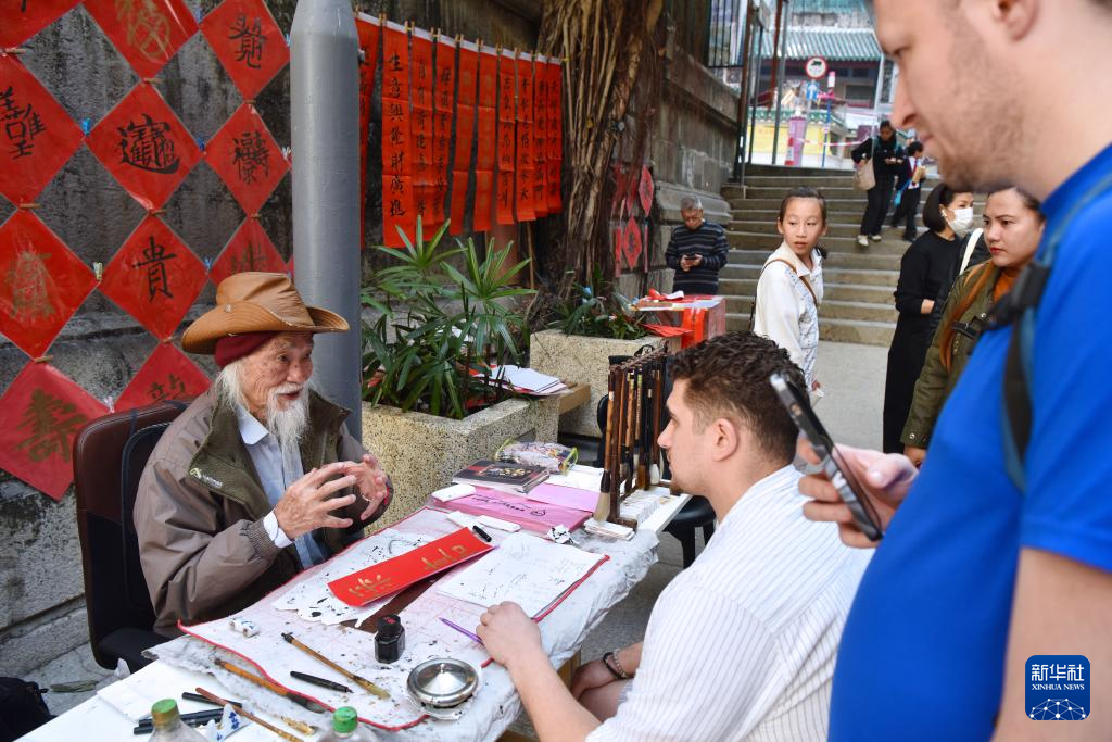 社交媒体的传播让楼梯街手写挥春被更多人知晓。不少游客慕名而来,还有海外华人托人定制挥春,将这份年味送往世界各地。“现在越来越多年轻人喜欢手写挥春,他们说,这是过年该有的仪式感。”萧颖妍说。