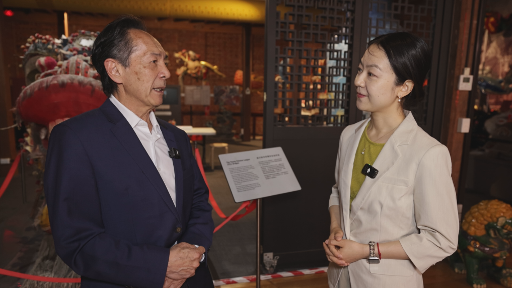 2月1日,新华社记者采访墨尔本澳华历史博物馆首席执行官王兴乡。(视频截图)新华社报道员归清摄