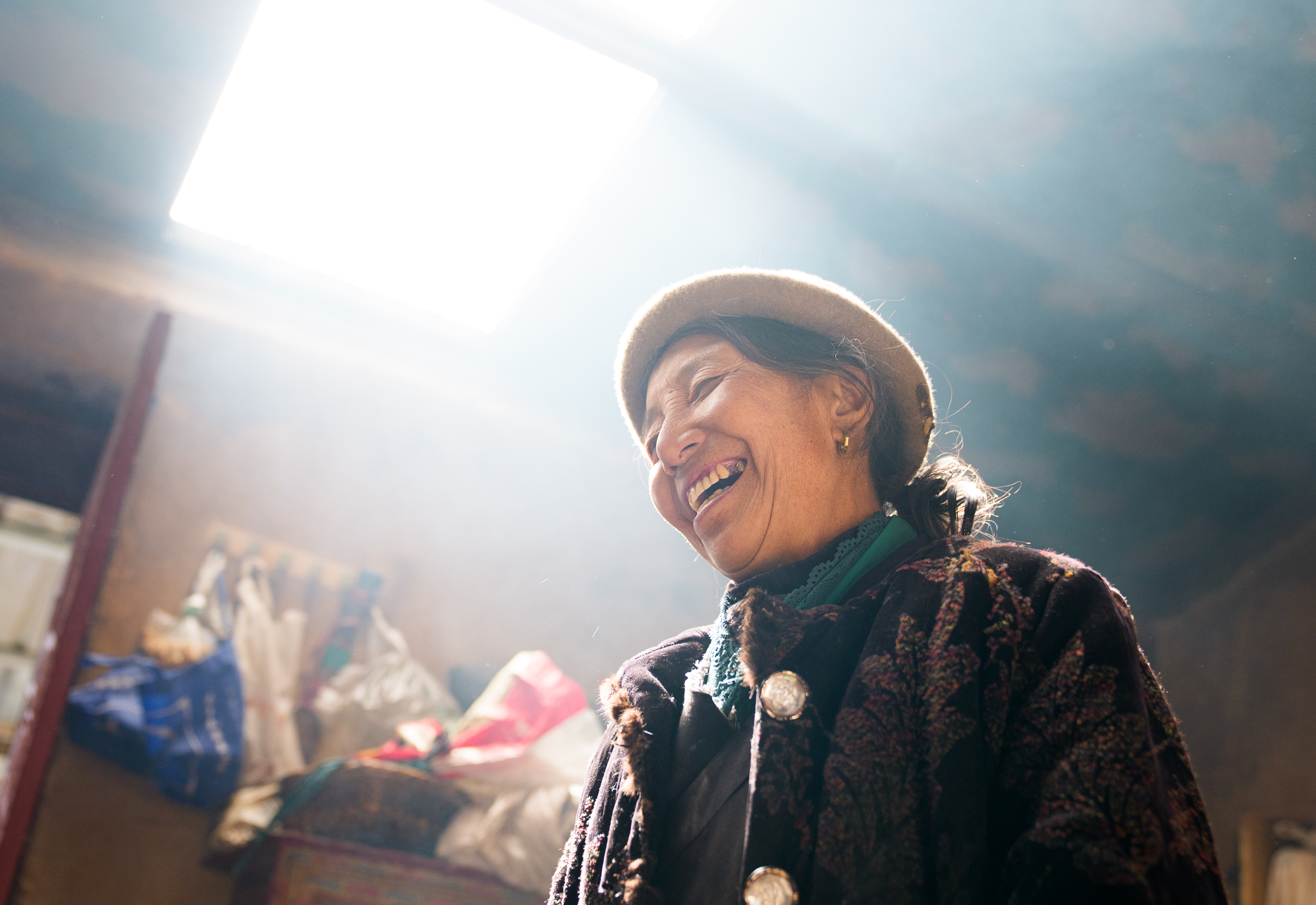 卓嘎的家离牧场只有几百米,两层藏式楼房高大、宽敞,但她平时更喜欢住在牧场,“还是跟牦牛们在一起,觉得更自在”。65岁的她,养了104头牦牛。据乡干部介绍,一头牦牛市价近2万元。去年,卓嘎把16头牦牛崽送给了乡亲,“年纪大了,照顾不过来了”。她还是那么爱笑。