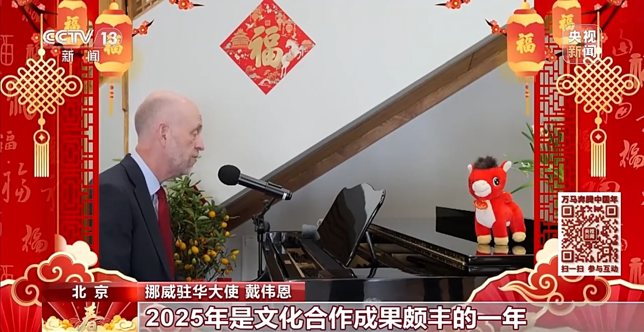 作为最早同新中国建交的国家之一,挪威与中国在绿色、海洋、文化等领域合作密切。如今,中国已成为挪威海产全球第三大出口市场,也是出口额增长最大的国家。就在去年的进博会上,鲜活的挪威面包蟹与棕奶酪正式叩开中国市场大门,越来越多的挪威味道摆上中国百姓餐桌。挪威驻华大使戴伟恩,今年第二次在中国过春节。在他看来,与家人和朋友团聚、享用美食,是节日中最温暖的部分。戴伟恩表示,刚刚过去的蛇年,中挪两国关系硕果累累、稳步向前,期待在马年与中国开展更密切合作,并送上最应景的祝福“马上成功”。