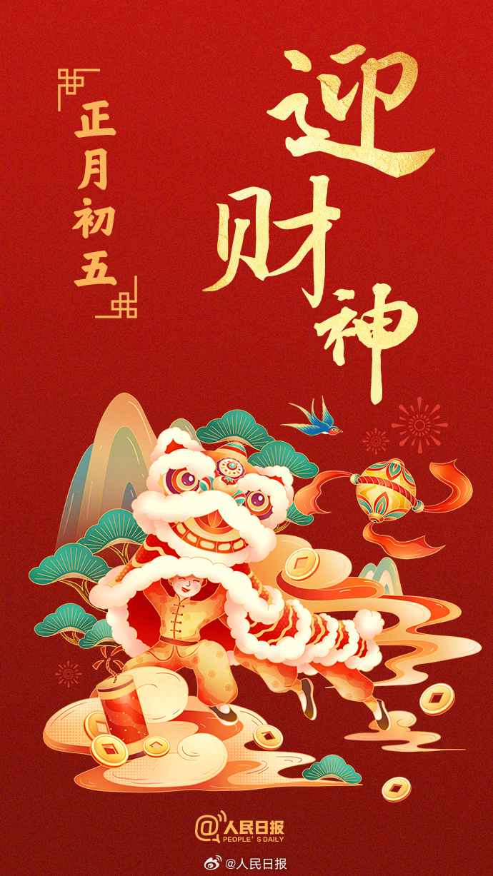 正月初五,俗称“破五”,指的是农历新年前些天的禁忌皆可打破,民间还有“迎财神”的习俗。在这个迎福纳祥的好日子,祝你万事兴隆、财源广进!
