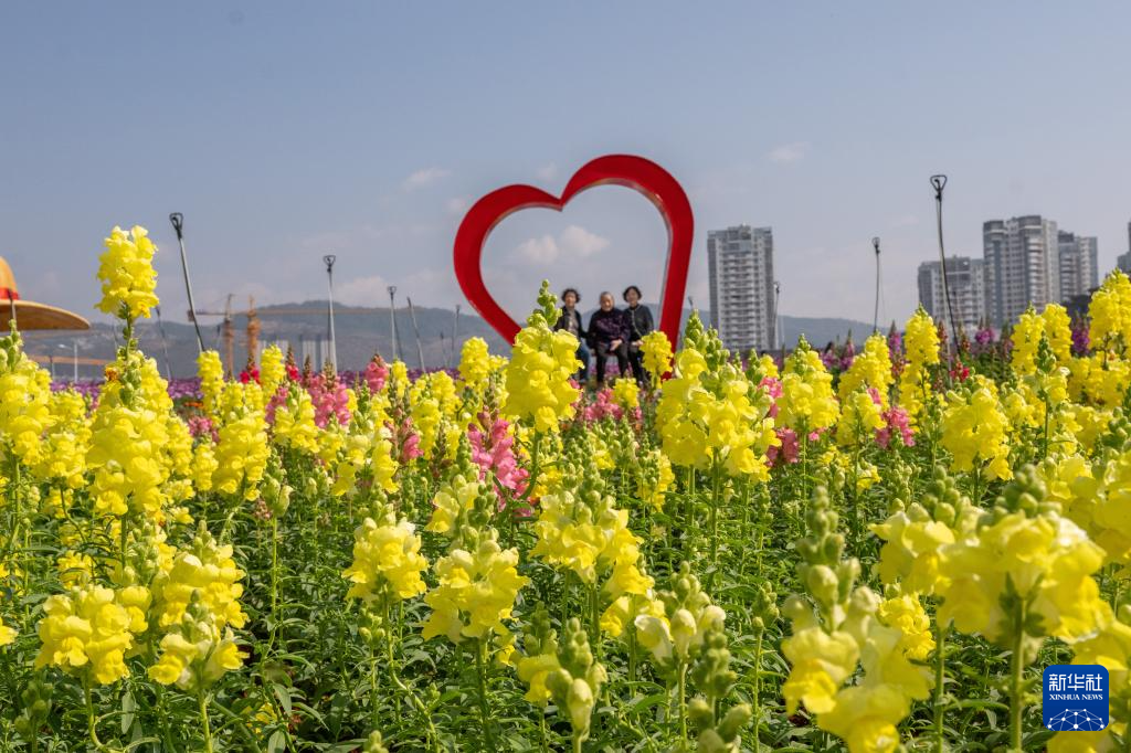 2月23日,游客在云南省文山壮族苗族自治州文山市一花园内赏花。新华社发(熊平祥摄)