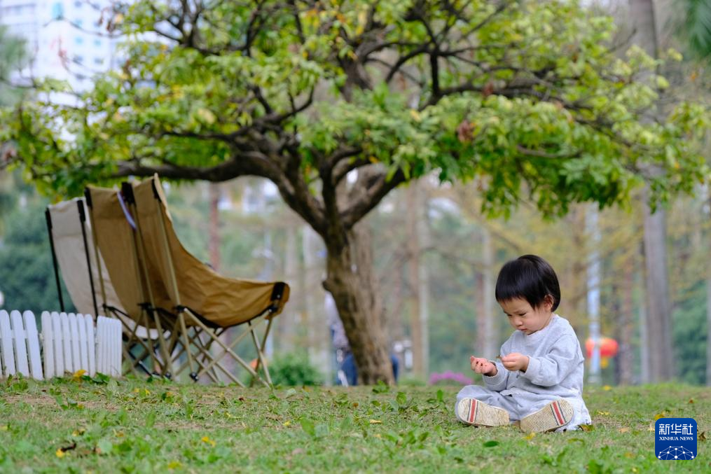 2月23日,一名小朋友在广西南宁市南湖边绿地上玩耍。新华社记者 陆波岸 摄