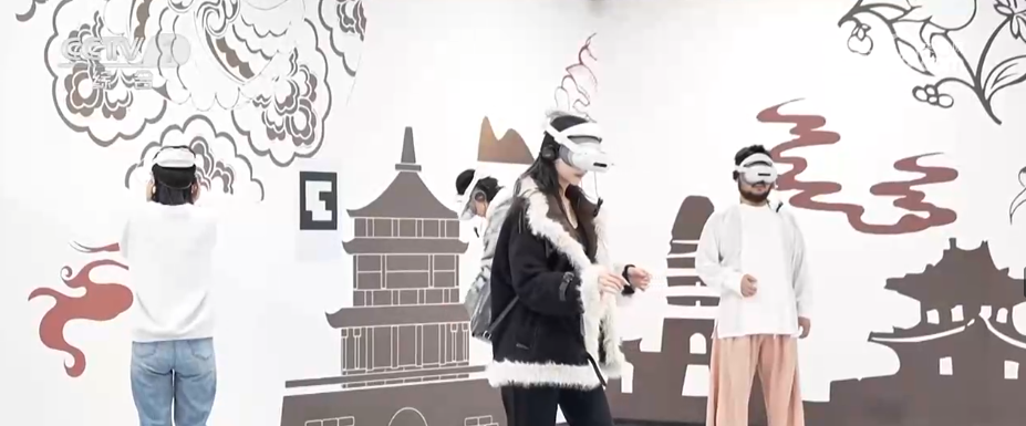 春节期间,随处可见的科技元素助力提升游客体验。在西安长安十二时辰主题街区,游客戴上XR设备即可沉浸式开启长安地宫探秘之旅。