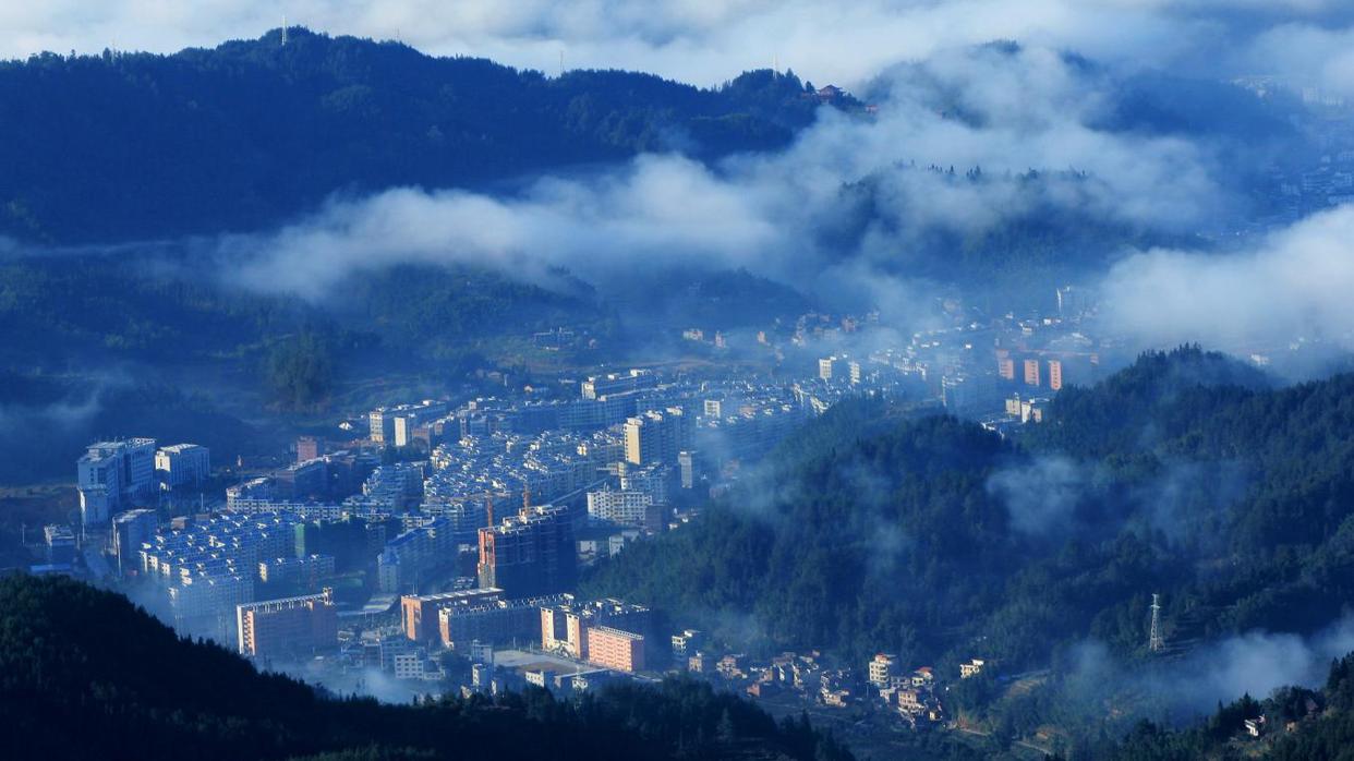 云雾环绕下的山城桂东(桂东县委宣传部 供图)