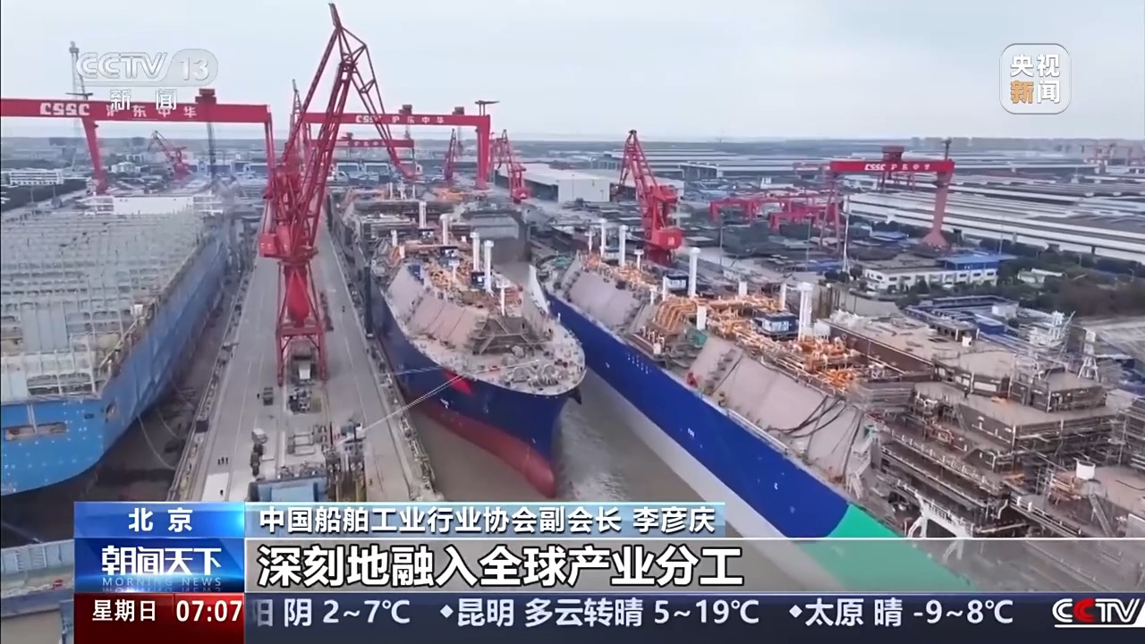 李彦庆:中国船舶工业现在手持3~4年的订单,生产任务非常饱满。中国船舶工业会继续沿着高质量发展的道路,深刻地融入全球产业分工,共同塑造绿色智能发展的新产业格局。