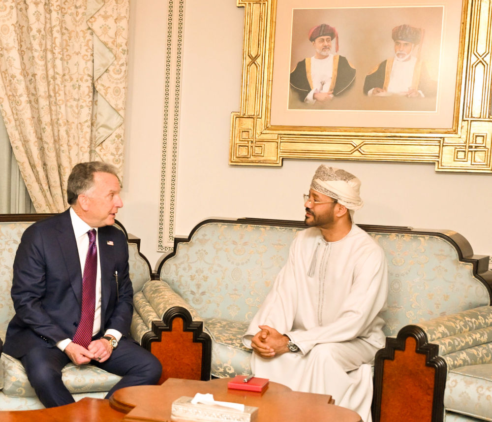 2月6日,在阿曼首都马斯喀特,阿曼外交大臣巴德尔(右)会见美国总统特使威特科夫。新华社发