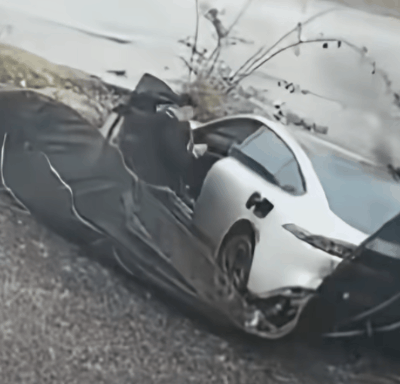 一段网络视频显示,一辆汽车失控滑入路旁沟里,随后冒出浓烈黑烟和火焰。车主下车后尝试打开后车门,但车门无法从外部开启。有人员上前砸窗,后排乘客才被救出。