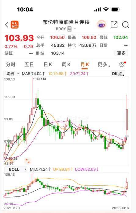 根据高盛3月13日的最新预测,3月份布伦特原油期货均价将突破100美元/桶,4月份或回落至85美元/桶。摩根大通分析认为,如果美以与伊朗在中东的冲突超过3周,布伦特原油期货价格将达到100美元至120美元/桶。