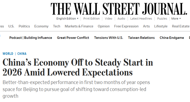 多家外媒认为,中国经济在2026年实现了有力开局,工业生产、消费和投资表现均超预期走强,这一开局有助于中国在保持增长韧性的同时,继续推动经济向消费驱动型增长转变。
