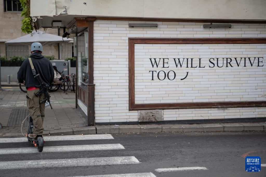 3月26日,一名背着武器的预备役士兵在以色列特拉维夫街头骑滑板车。新华社记者 陈君清 摄