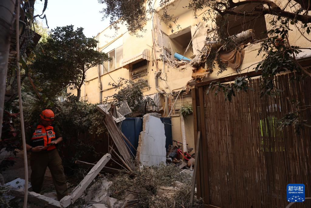 3月8日,在以色列特拉维夫,快速反应救援人员在一处遭袭现场工作。新华社发(吉尔·科恩·马根摄)