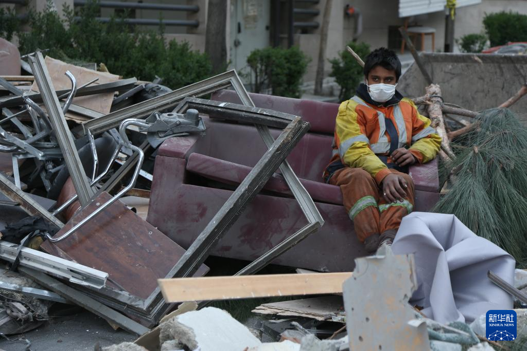 3月29日,在伊朗首都德黑兰,一名男子坐在废墟中的沙发上休息。新华社记者 沙达提 摄