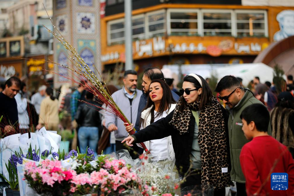 3月19日,人们在伊朗首都德黑兰的塔吉里什集市购买商品,迎接诺鲁孜节。新华社发