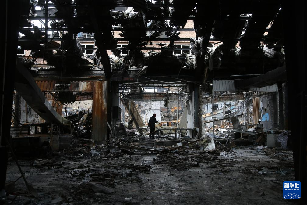 3月28日,在伊朗首都德黑兰,当地居民查看一家损毁的汽车服务中心。新华社发