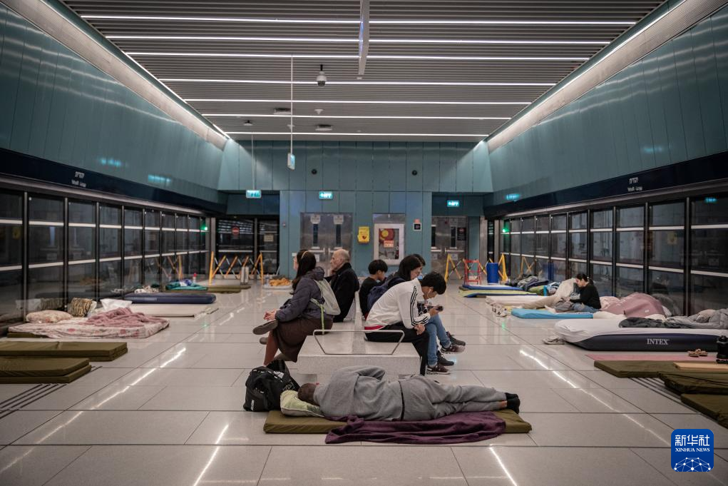 3月26日,在以色列特拉维夫,防空警报响起时,人们在一处具备民防功能的地铁站避难。新华社记者 陈君清 摄