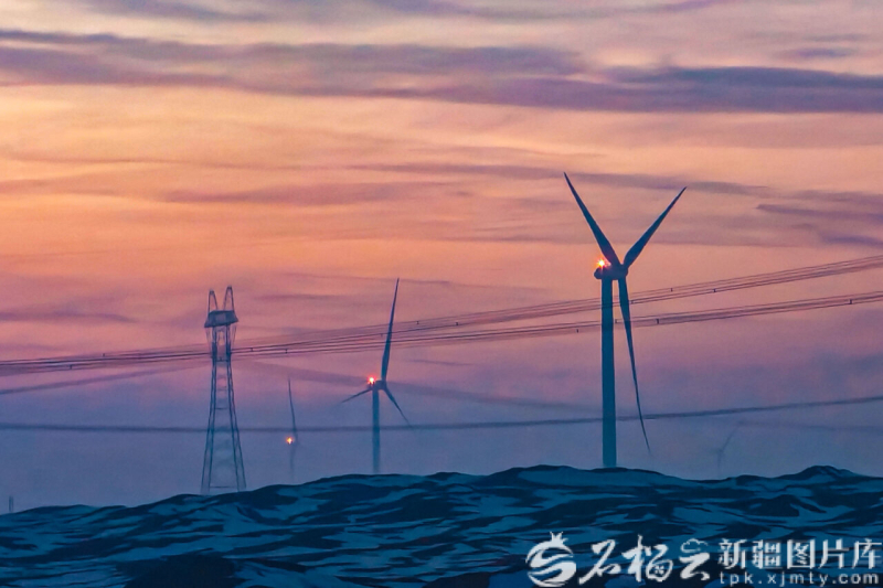2月3日,航拍新疆生产建设兵团第六师北塔山牧场风光电场。李华北摄