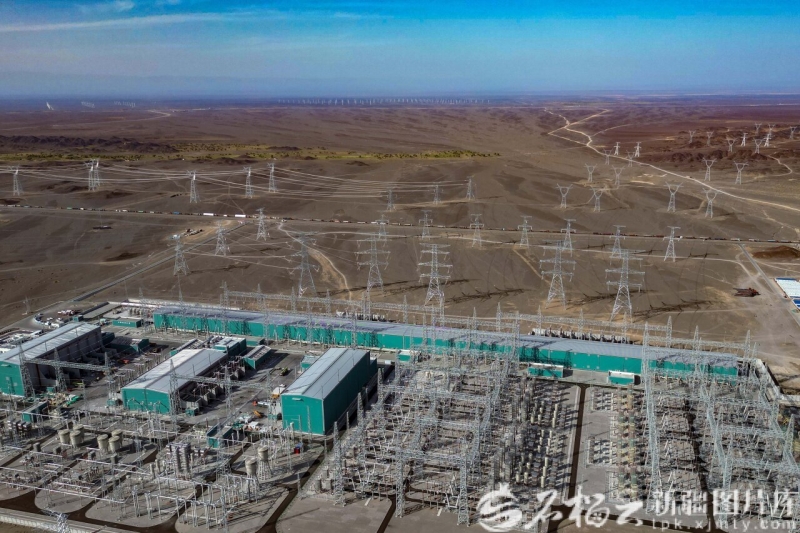 2025年6月14日在巴里坤哈萨克自治县三塘湖镇拍摄的哈密—重庆±800千伏特高压直流输电工程巴里坤换流站外景。石榴云/新疆日报记者 蔡增乐摄