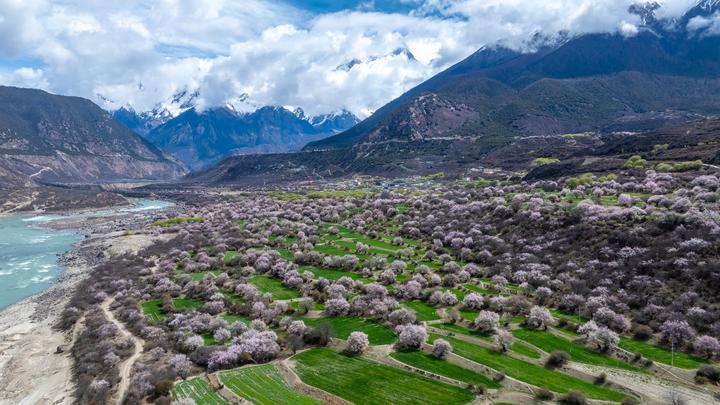百里桃林沐雪盛放,粉霞漫卷河谷山川,远瞰犹如精心雕琢却又恣意铺展的粉彩画卷。在喜马拉雅山脉的褶皱里,这股“温柔”而向上的“野性”,昭示着西藏最早的春天已经到来。