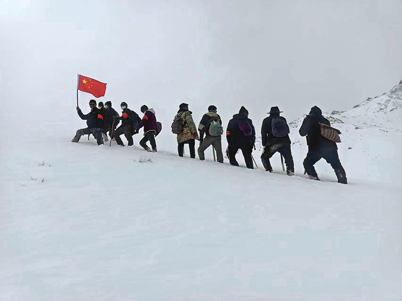 回忆起那段时光,次仁罗布说,执勤点方圆几公里范围内没有一个人,耳边除了呼啸的风声,只能听到他自己粗重的喘息声。气温骤降时,积雪有一人多高,他只能用镰刀一点点刨出可供落脚的雪坑,这样重复成百上千次,才能到达最前沿的执勤点。执勤点路途较远,往返一次要耗时整整两天。夜里,他只能寻一处勉强能避风的岩石,伴着漫天星光和衣而卧。