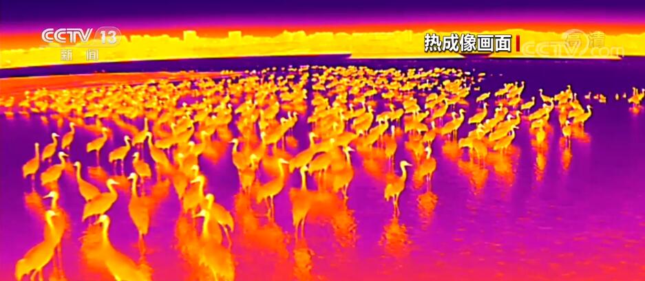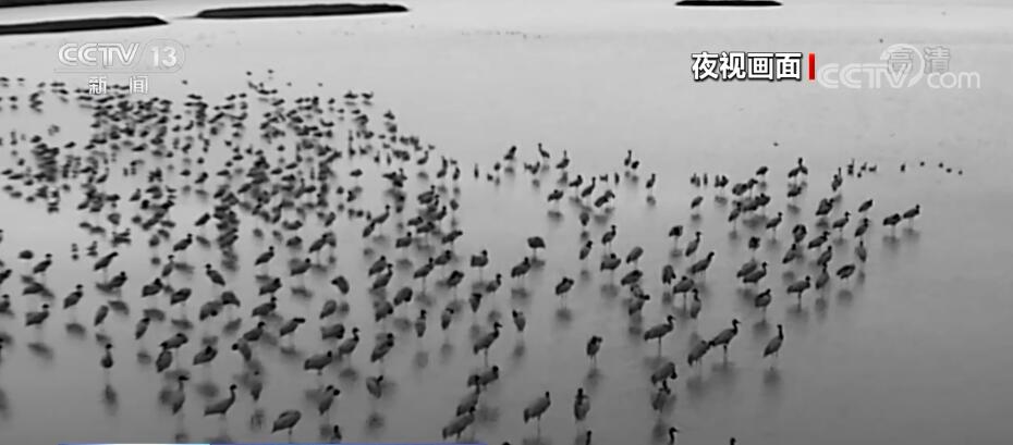 央视网消息:根据监测,目前在贵州威宁草海国家级自然保护区越冬的国家一级保护动物黑颈鹤数量已超过1000只。我们经常看到的是白天的画面,而近日,记者就使用“夜视”加“热成像”技术,在拍摄到了这群黑颈鹤在夜晚的样子。它们仍然成群聚集在一起,单腿站立睡觉,等待天亮飞出去觅食。
