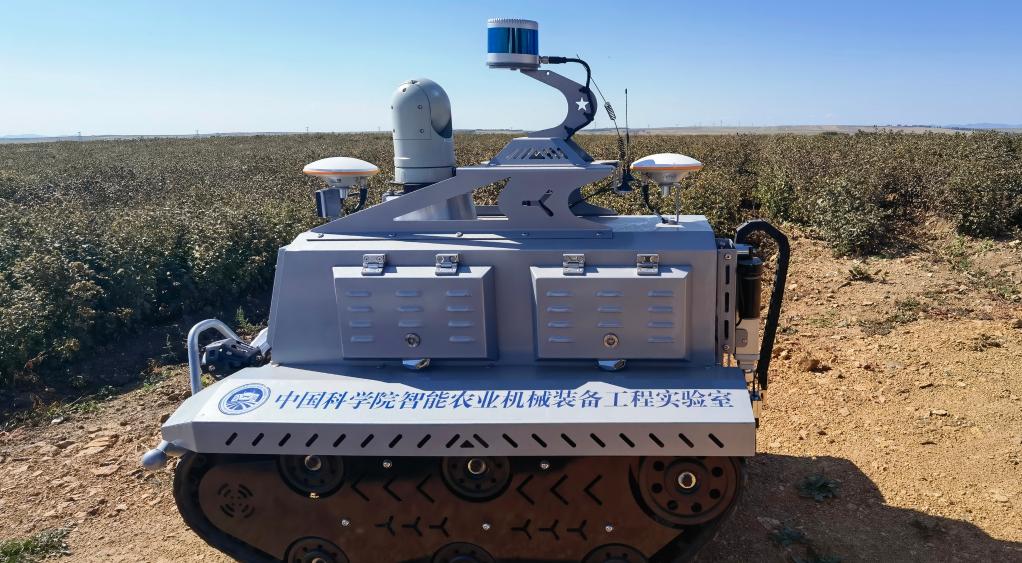 中科院计算所的工作人员正在启动新一代无人化智能农机。新华社记者邹俭朴摄