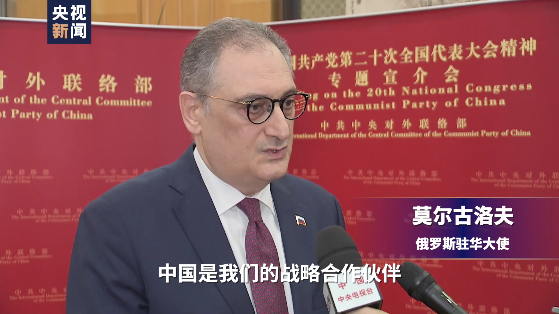 谈及中国共产党对外交往,俄罗斯新任驻华大使莫尔古洛夫表示,“中国是我们的战略合作伙伴,俄罗斯所有政党都希望跟中国发展各领域关系,作为俄罗斯驻华大使,希望我能起这个作用,发展中国共产党和俄罗斯各政党之间的关系。”