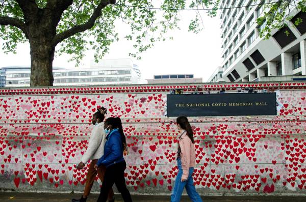 在英国,许多人因疫情失去生命,人们修建“新冠纪念墙”以示追思。IC 图