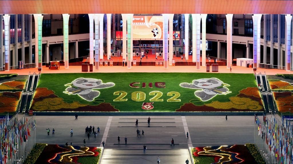 11月5日拍摄的国家会展中心(上海)夜景。新华社记者刘颖摄