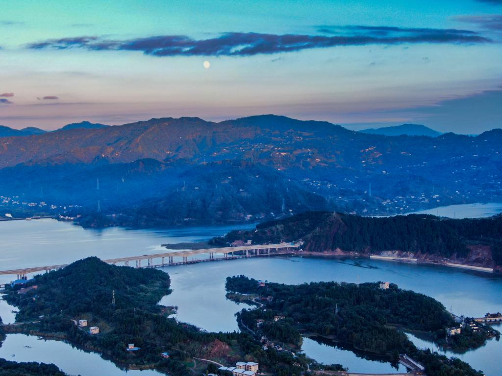 傍晚时分的汉丰湖景色。新华社记者刘潺 摄