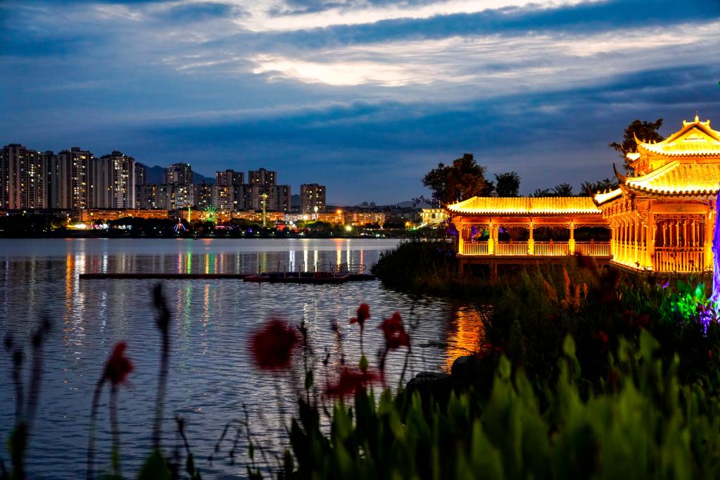 汉丰湖畔的夜景。新华社记者刘潺 摄
