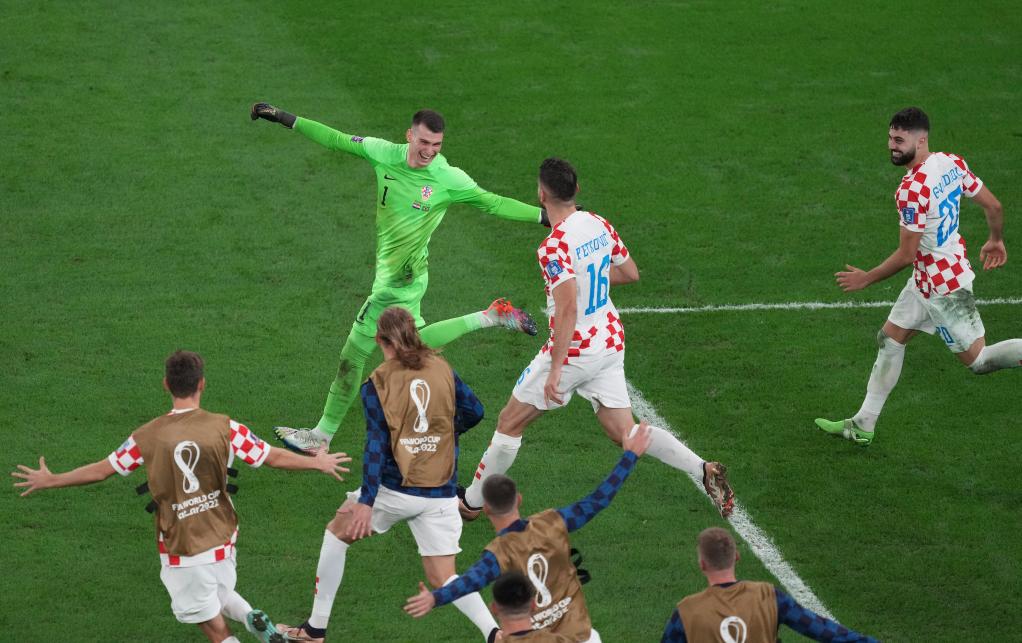 点球大战,表现神勇的“格子军团”门将利瓦科维奇扑出了罗德里戈的攻门,最后登场的马尔基尼奥斯击中门柱,克罗地亚队以4:2的点球比分胜出,将在半决赛对阵阿根廷队与荷兰队之间的胜者。
