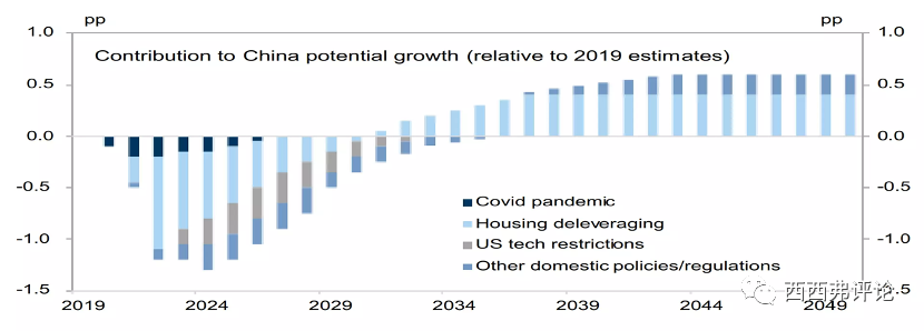 根据高盛的分析,在2022年,房地产业去杠杆对中国增长的负面影响,是疫情因素的数倍。
