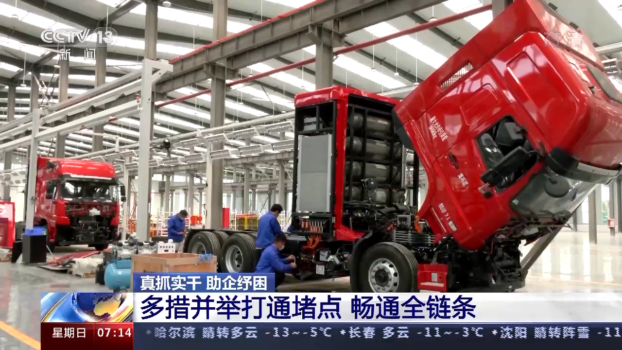 美锦新能源汽车制造公司吕梁氢能重卡车间生产主管刘斌奇说,目前,他们30多名员工已经进入了正常的工作状态,车间里的氢能重卡整车组装线也已经开始了正常生产,现在已经恢复了一天两台的生产力,而且车间原料储备充足,完全满足生产需求,可以保证整个生产链的正常运行。