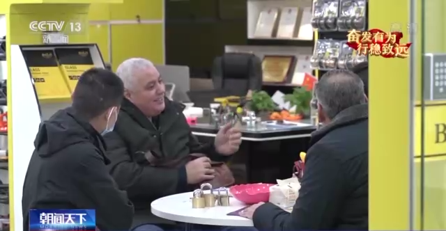 老朋友三年未见,除了激动地畅聊,尼扎尔·阿尔德雷姆利还有正事要赶紧办。很快他定下了玻璃锁、门拉手等产品,价值金额50万元。尼扎尔·阿尔德雷姆利说他这次只在中国待1个月,他把行程安排得相当紧凑,这几天,他要在义乌拜访日用百货、五金厨具等领域的多家商铺,忙完采购,他还要接着前往广州的工厂。