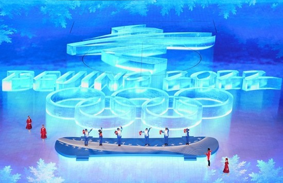 2022年2月20日,北京,2022北京冬奥会闭幕式,志愿者代表接受表彰与感谢。视觉中国供图